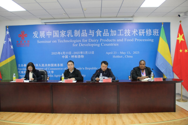 4月23日上午,商务部援外培训项目、发展中国家乳制品与食品加工技术培训班在我校开班。食品科学与工程学院党委书记、援外培训办公室负责人和工作人员、培训班学员参加开班仪式。 培训班主要授课单位、食品科学与工程学院党委书记介绍了学校的基本情况和培训的相关课程安排,鼓励学员积极提高理论知识、提升专业技能的同时,感受中国的风土人情,为我国与各国共同创造“一带一路”框架下的利益共同体、命运共同体和责任共同体贡献力量。 来自所罗门群岛的拉芙琳·拉玛丽·佛利女士代表学员感谢中国商务部和内蒙古农业大学为他们提供此次培训机会,希望通过培训能够更好了解中国的发展,学习中国乳制品与食品先进的加工技术,收获一段美好难忘的学习经历。 培训班11位学员分别进行了自我介绍。 本次培训将于5月13日结束,培训课程围绕乳制品生产、加工、检测等内容开展,包括课堂讲授、研讨学习、现场教学等。 2025年上半年学校获批承办商务部四期援外培训项目,并作为自治区唯一的商务部援外培训项目承办单位,已成功承办了48期援外培训班、研修班,累计培训了65个国家的1239名政府官员和技术人员。